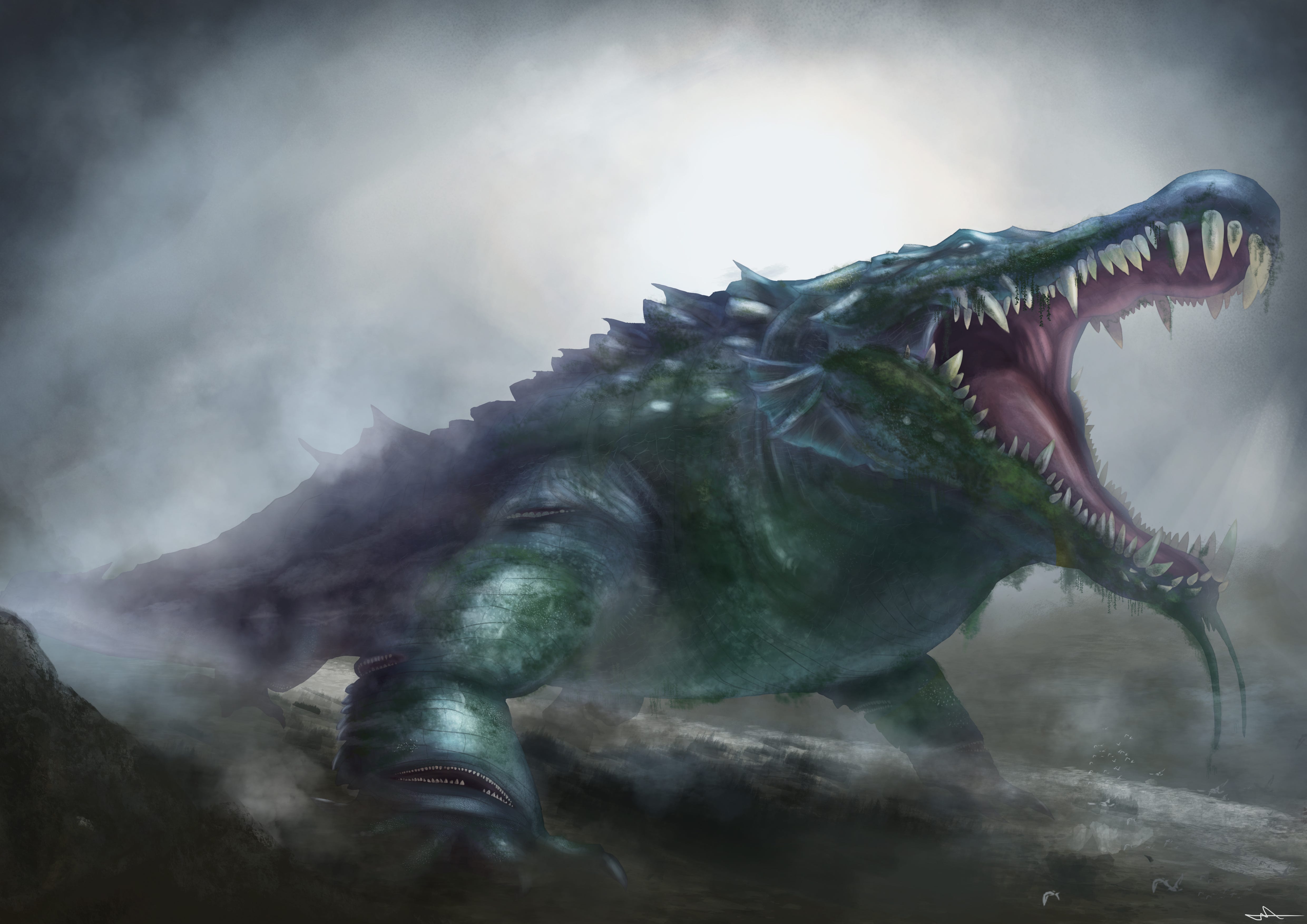 - Physical Characteristics: Cipactli is often described as a monstrous, sea-dwelling creature. It has a crocodilian or amphibious appearance, with a combination of reptilian and aquatic features. Cipactli is typically portrayed as a massive creature with a gaping mouth filled with sharp teeth.